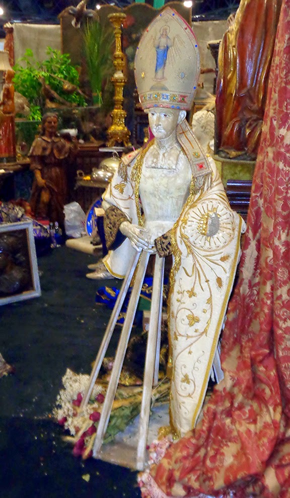 On my way out of the Miami Antique Show I took a photo of the large figure below that resembles antique fashion dolls (which were much smaller.  I'm calling it a "Pope Doll" and have no idea of its price or purpose.