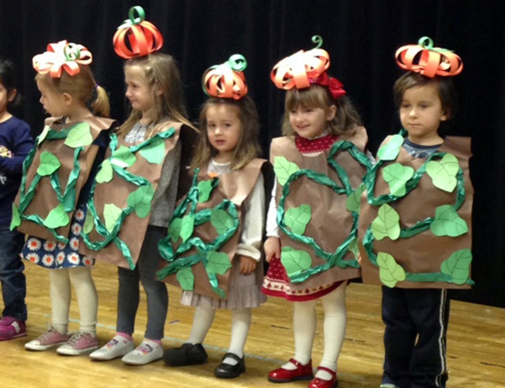 Last Tuesday at preschool we did our Thanksgiving program.  We all wore pumpkins on our head and sang a Thanksgiving song.  I'm the short one in the middle.  I'm starting to think that my future career will not be in musical theater.